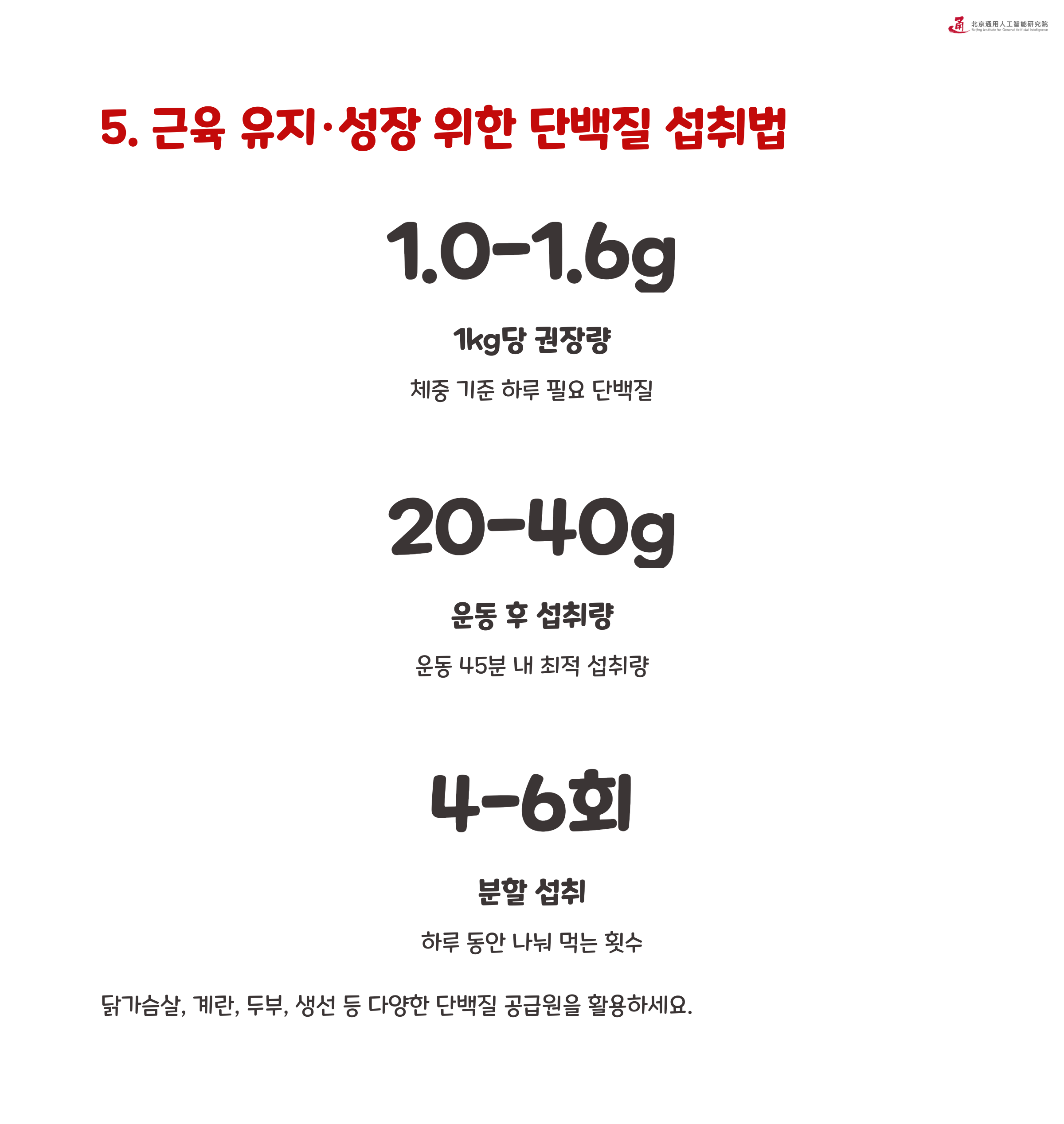 A: "단백질과 탄수화물을 적절히 섭취해야 합니다."