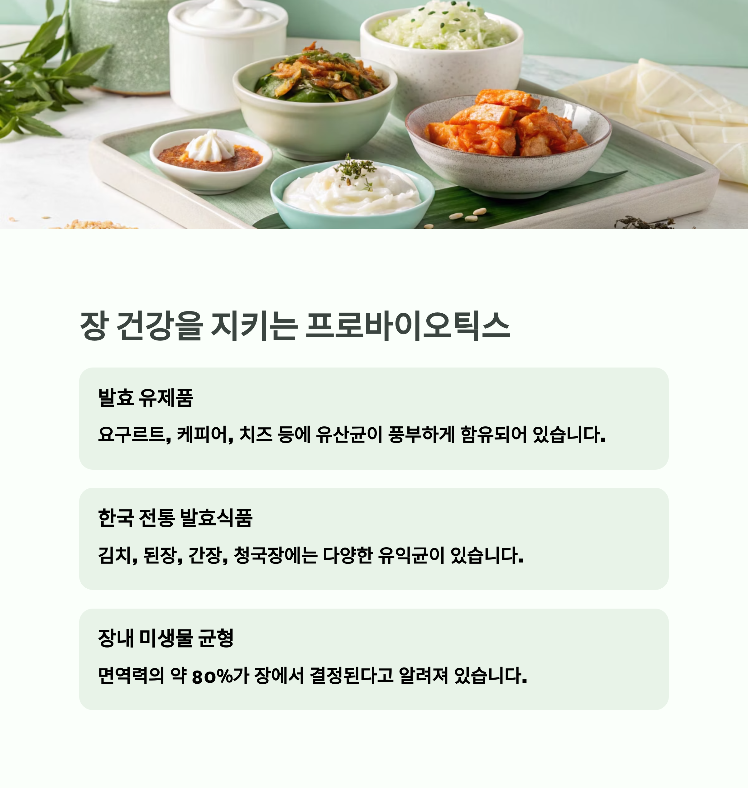 프로바이오틱스가 풍부한 음식 - 장 건강과 면역력