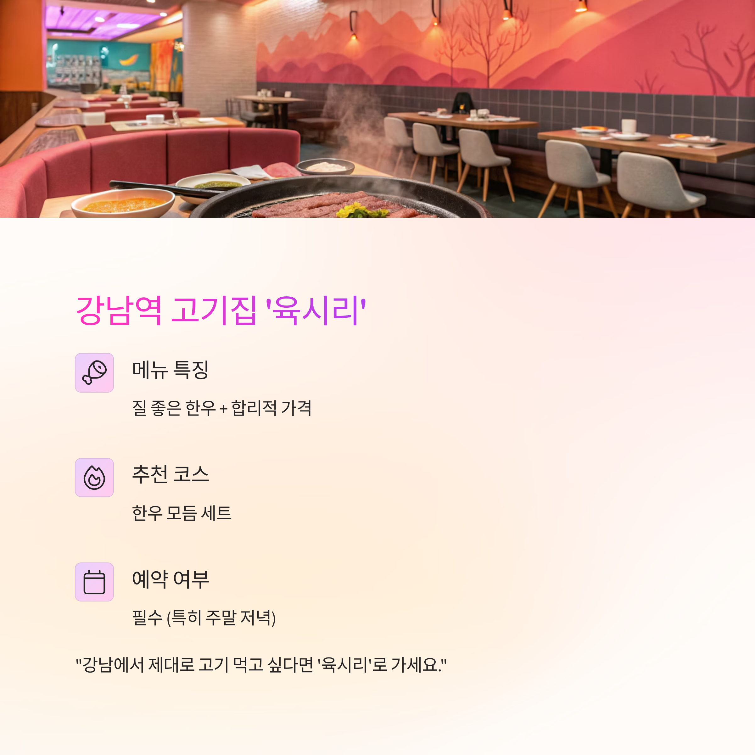 "강남에서 제대로 고기 먹고 싶다면 '육시리'로 가세요."