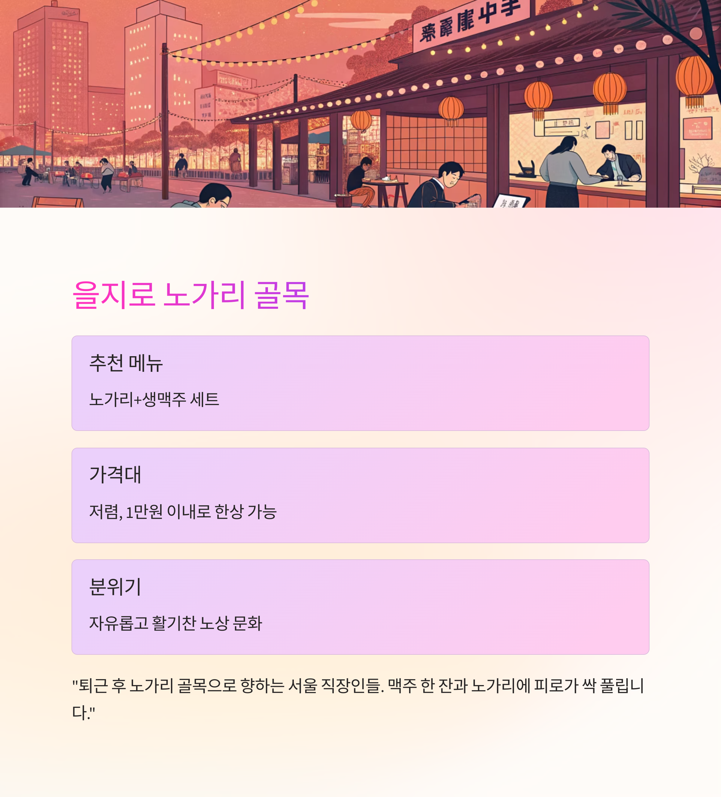 2. 을지로 노가리 골목 (현장감 스토리텔링)