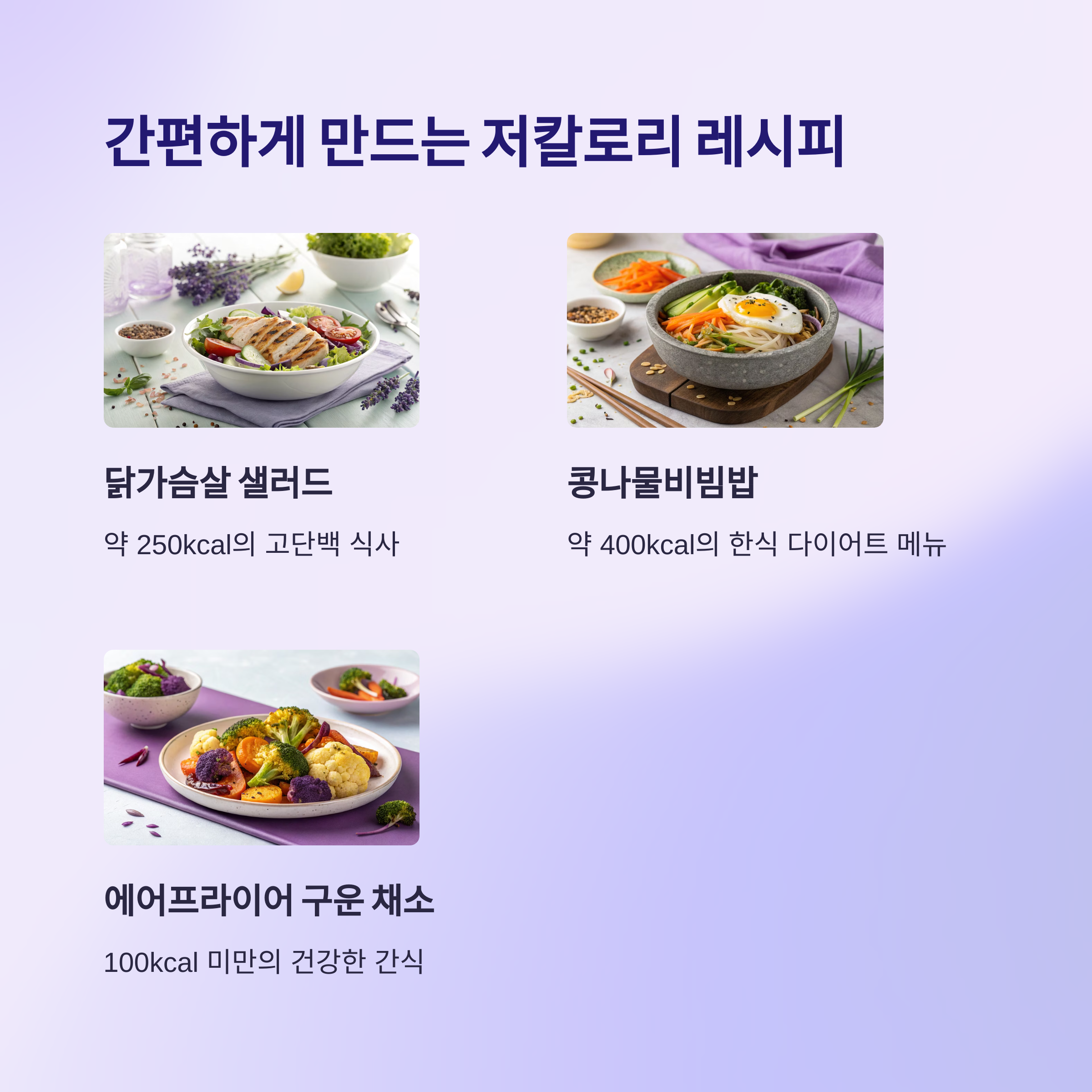"간단한 레시피를 통해 언제든지 저칼로리 식사를 쉽게 준비할 수 있습니다."