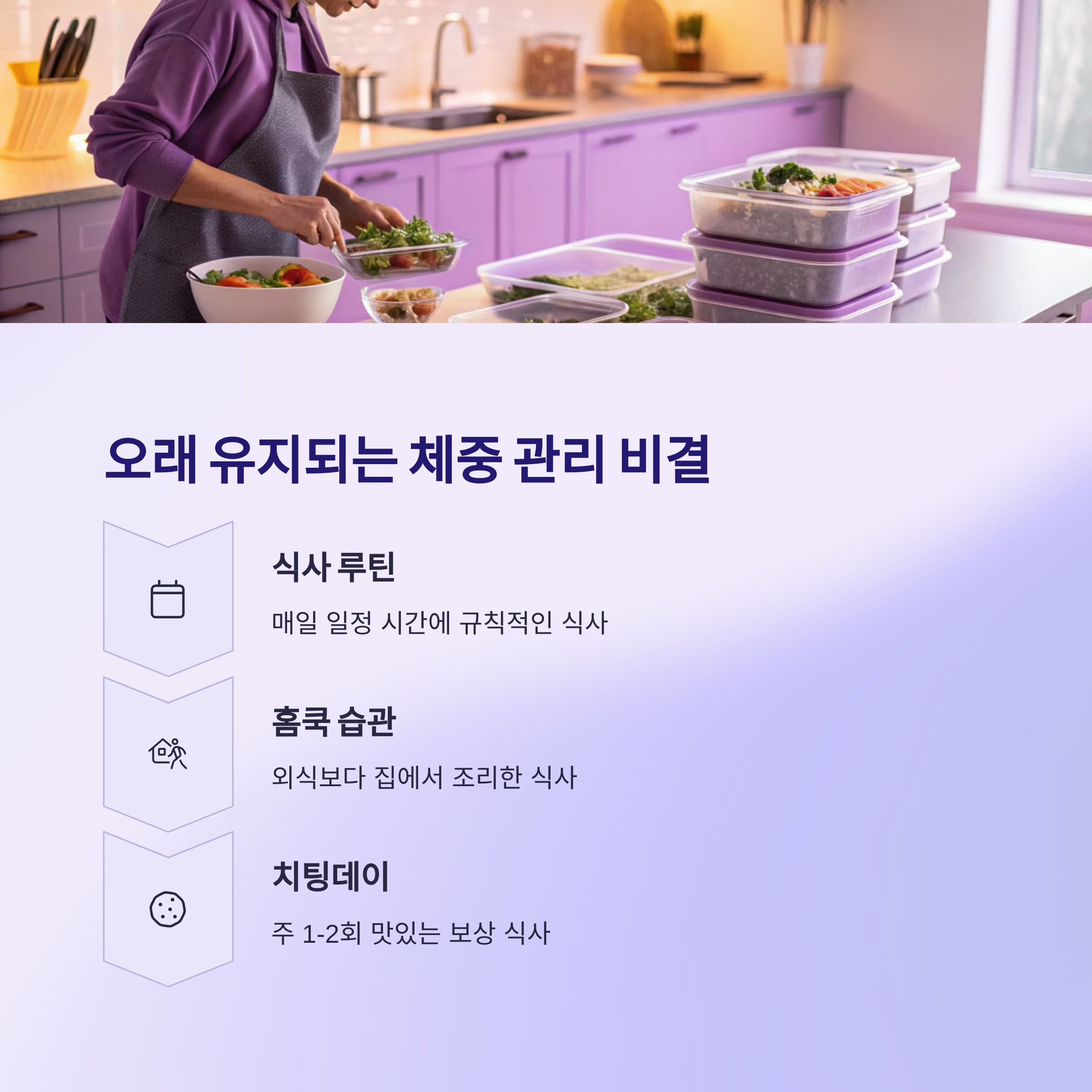 "지속 가능한 체중 관리를 위해 저칼로리 식사와 운동을 병행하며 건강한 생활습관을 유지해야 합니다."