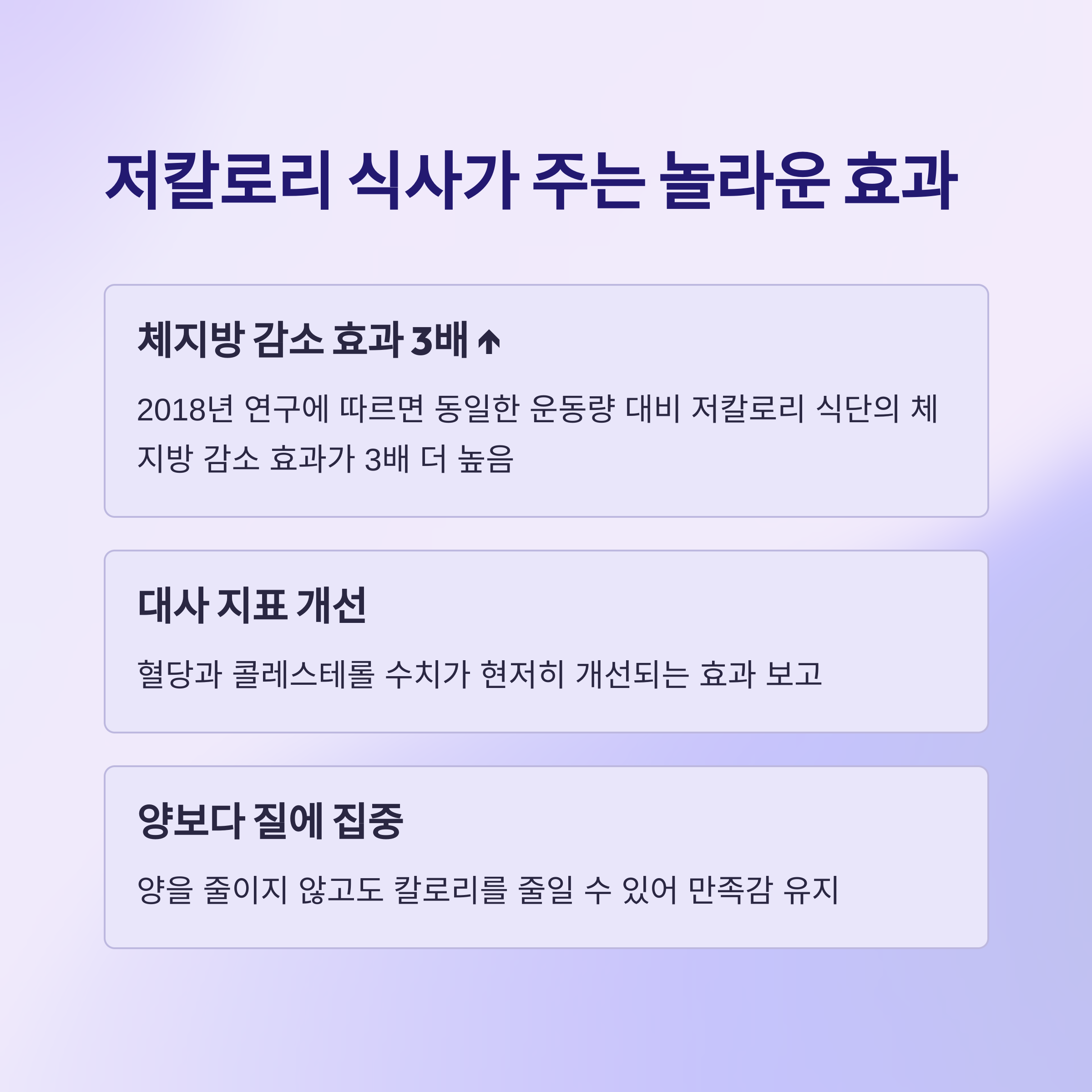 "저칼로리 식사는 체중 감량뿐만 아니라, 건강한 생활을 위한 중요한 요소입니다."